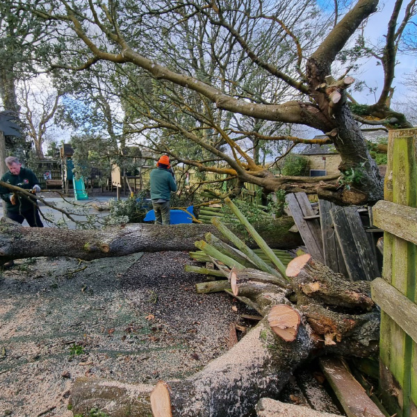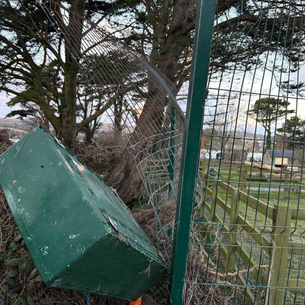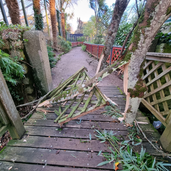 Lots of fallen trees through the woodland walk, damaging fencing and a waterproof electrical cabinet.