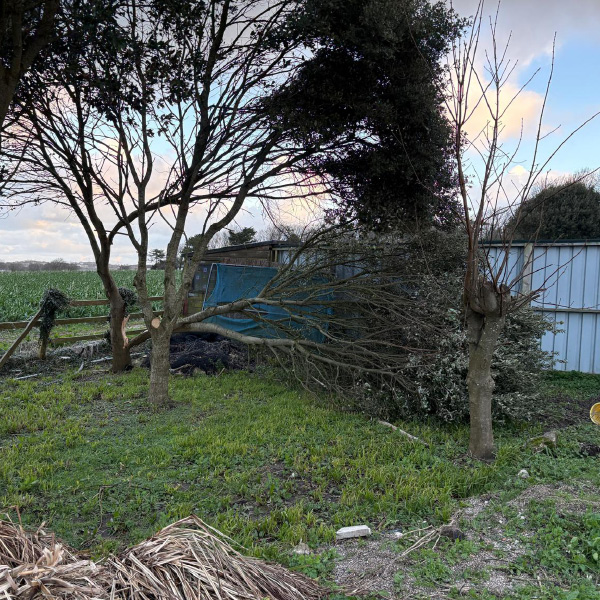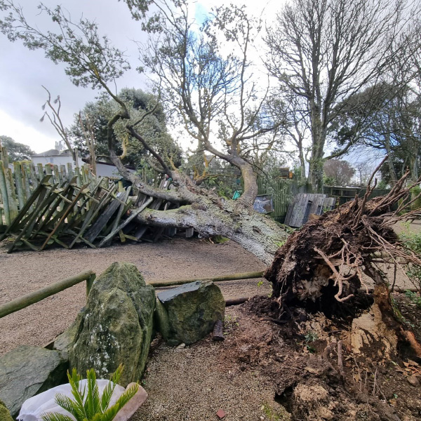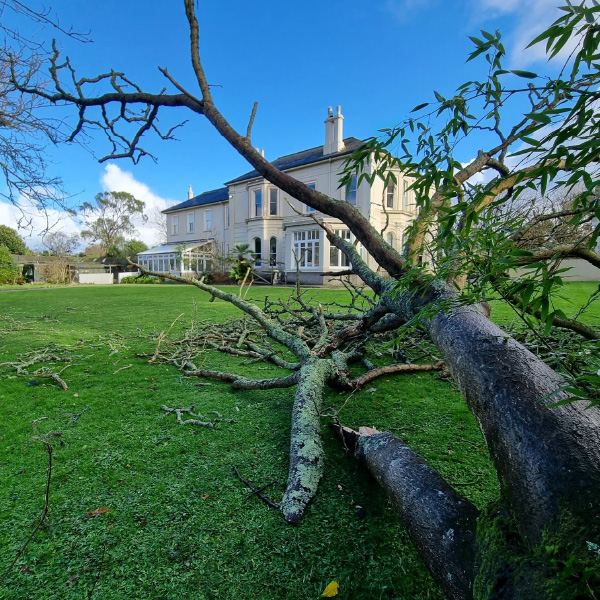 Large trees fallen near the Fun Farm and in front of Glanmor House at the centre of the Park.