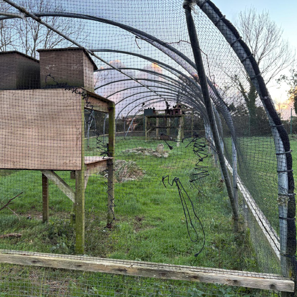Ripped netting opened up a big hole in one of the off-show chough winter flocking aviaries. Thankfully, none were missing.